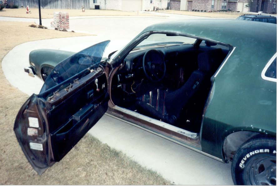 Since the dash was a mess, I can't tell if it had extra lighing yet, and the original hood is gone (it came with a '79 Z28 hood). Standard instrumentation. It does have the bright trim around the upper edge of the doors, fender and hood. A very basic Camaro.