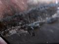 It looks like the rear glass leaks because someone has at one time tried to re-seal it form the outside with silicone. The passenger side rear quarter has rusted through at the very bottom. They also tried to use something (seam sealer?) to paint over the rust in the rear floorboard. It continued to rust through and needs replacing. They also removed the console brackets from the floorpan.