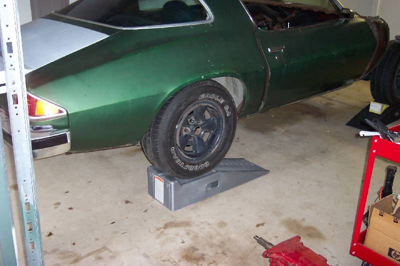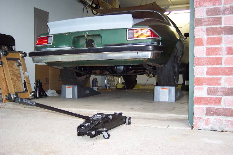 When I first got the car, the previous owner had installed 1" lowering blocks in an effort to lower the rear stance, as in the first pic above. The second pic shows how high the car sat after I removed the lowering blocks. The third pic is how it looks after I installed the 4 leaf springs.