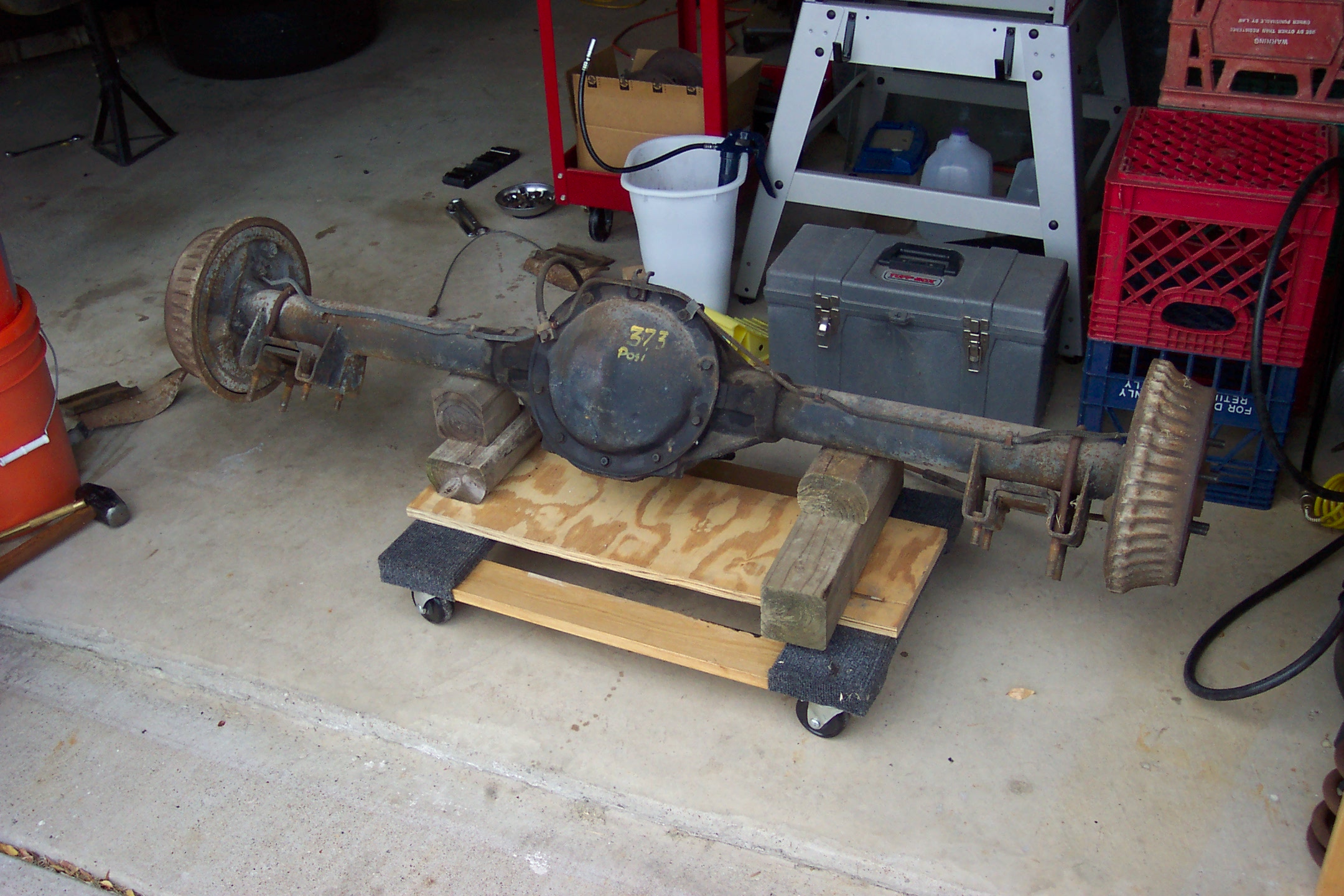 Now that I have the front suspension together, time for the rear. New 125 lb springs, new bushings, shackles and spring pads. The 3.73 is really a 3.08.
